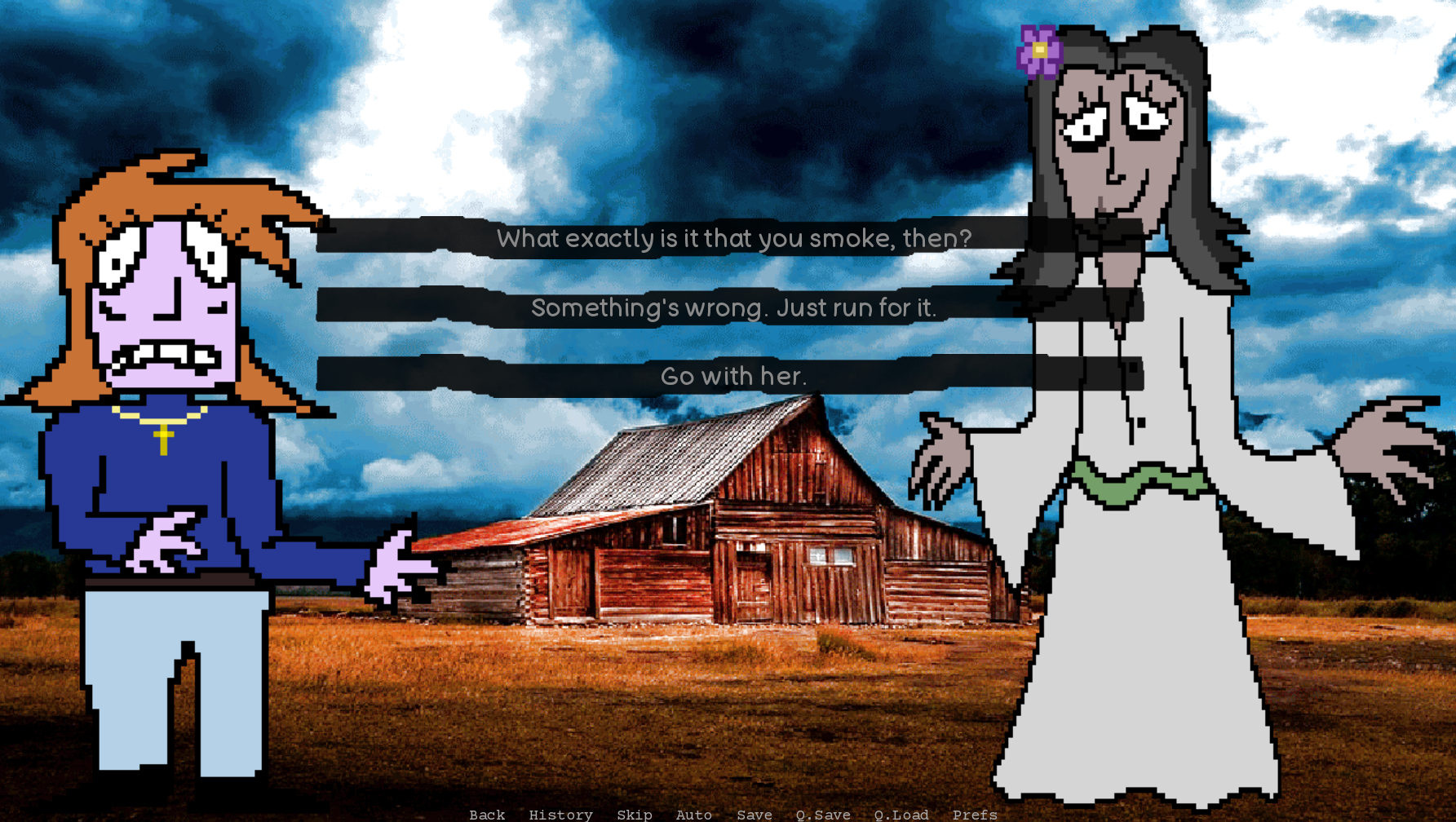 Anyway, you see, Abbey's gone and gotten into some car trouble out in the country, and her phone isn't working! She's not sure what to do, and there might be trouble around. Maybe you should help her stay calm, to stop and smell the flowers? She's always in such a rush. Maybe she'll meet someone nice out here